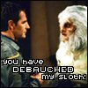 Description: Angry Xindi confronting Captain Archer; caption says YOU HAVE DEBAUCHED MY SLOTH